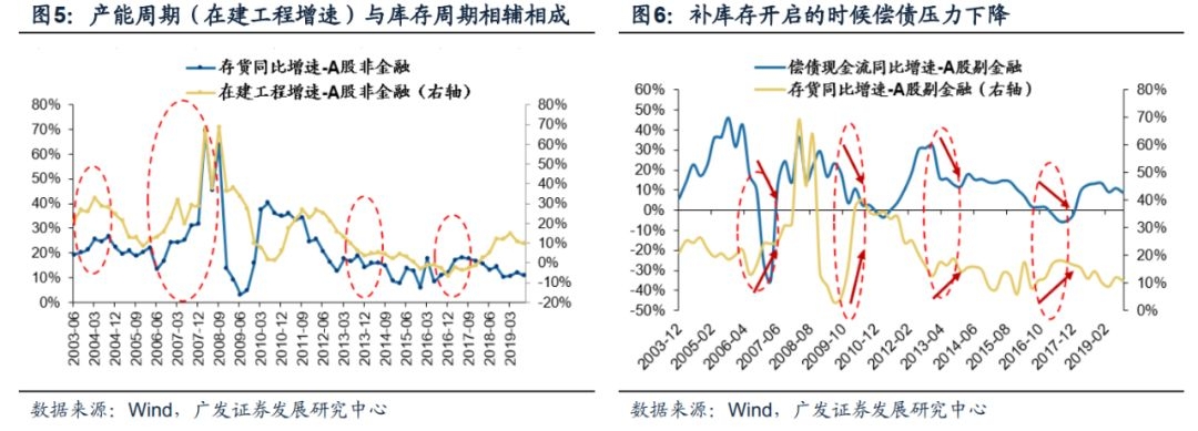 债务约束缓解+(龙头股)补库存现金流底部回升,是判断企业是否“补库存”的依据。(1)债务周期约束将影响企业库存决策的制定,处于偿债下行周期的行业更有可能“补库存”——处于偿债上行周期的行业,即便三张财报已经修复,补库存的能力(现金流)也会受到偿债压力掣肘,很难开启“补库存”周期。反之,处于偿债下行周期的行业,偿债压力持续缓解,一旦三张财报得到修复,补库存的能力(现金流)也能够得到加强,有望优先开启“补库存”周期;(2)“兵马未动,粮草现行”,补库存支付现金流底部回升,是企业“补库存”的重要迹象——资产负债表里面的库存同时包含原材料+产成品,库存增速的变化无法即时反映出企业的补库存意愿/能力,而作为领先指标的补库存支付现金流数据,在提示企业的“补库存”周期方面具备更高的灵敏度;(3)龙头股优先“补库存”,也是判断一个行业是否启动库存周期的关键指标——我们在19.11.4(《寄望龙头“牵引”,对冲民企“困局”——A股2019三季报深度分析》,中提示:随着A股分层/分化,龙头对行业影响力度显著抬升。春江水暖“龙头”先知,如果行业龙头公司开始主动补库存,可能也就意味着行业即将进入一轮补库存周期。