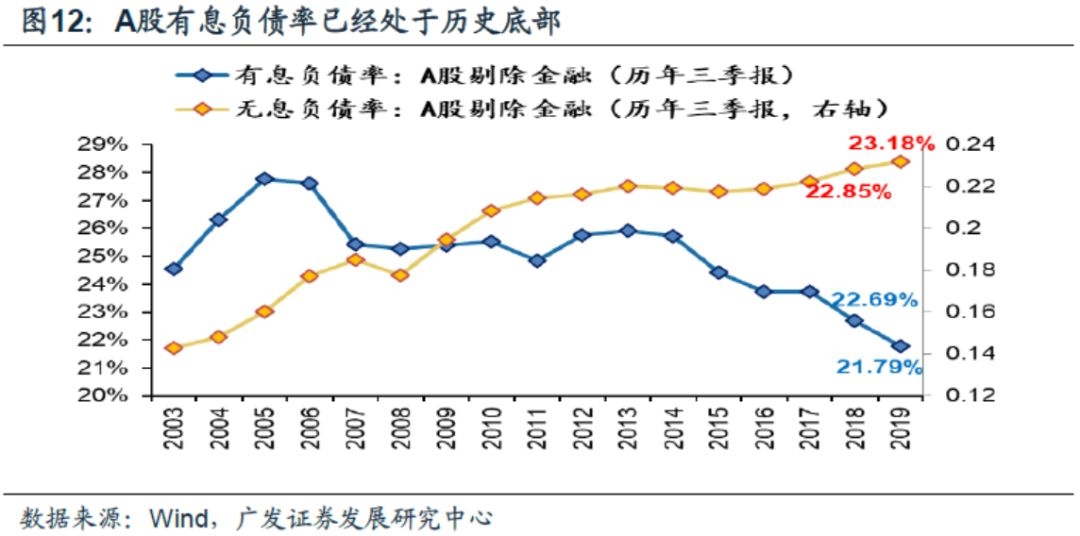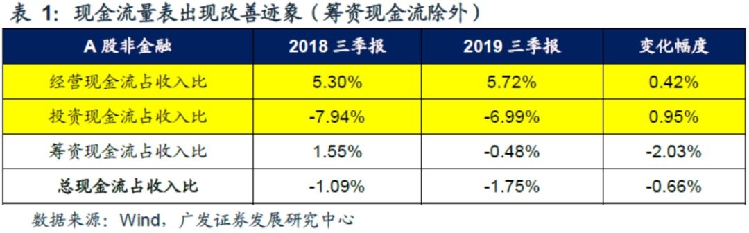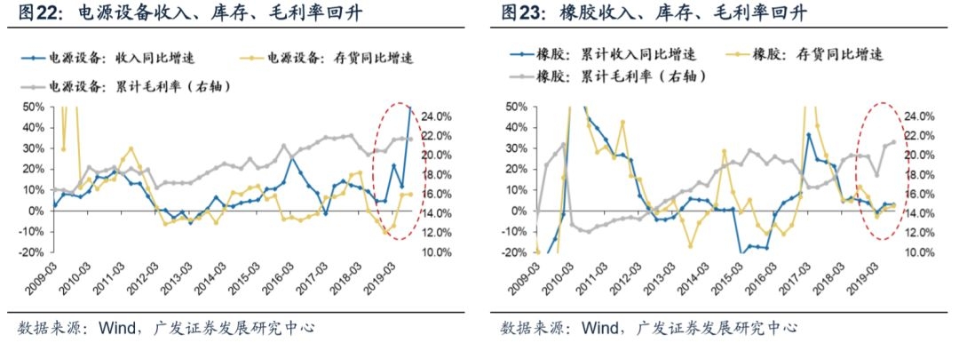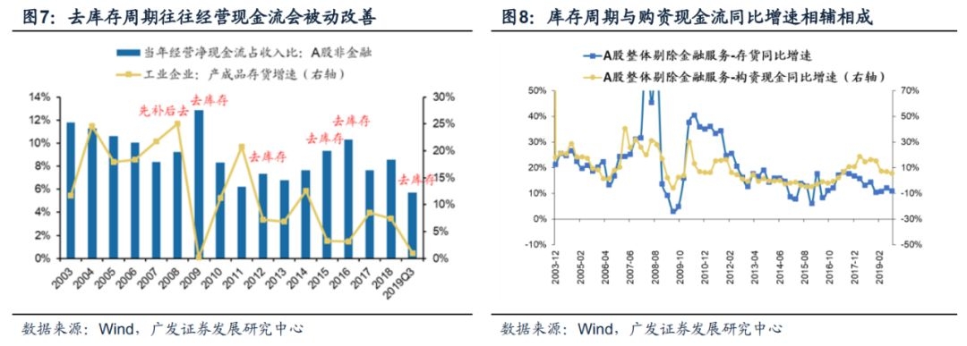 从19年3季报分项数据来看,A股剔除金融上市公司的现金流量表正在部分改善,而资产负债表则已经充分修复。(1)除了筹资现金流以外,现金流量表正出现积极变化。随着“稳信用”政策继续落地,预计20年筹资现金流也将边际改善——19Q3财报数据显示,上市公司的经营现金流和投资现金流均有所修复。但受包商银行事件、房企融资收紧政策等约束,19年上市公司的筹资现金流还在继续恶化。不过随着“稳信用”政策相继落地,预计20年上市公司的筹资环境(以及现金流量表)还将进一步得到修复;(2)有息负债率历史低位,资产负债表得到充分修复——13年金融“去杠杆”以来,A股剔除金融的有息负债率持续回落,19Q3仅为21.79%,处于历史最低水平。(3)现金流量表和资产负债表修复,将增强企业“补库存”的能力——现金流量表修复带来企业“补库存”的初期动能(有现金可以购置库存);而资产负债表的修复强化企业“补库存”的续航水平(可以通过部分“加杠杆”来持续补库存)。