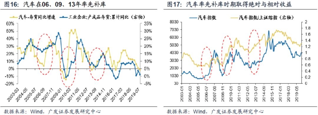 虽然驱动力不同,但是每一轮率先开启补库、且补库弹性更大的行业意味着需求端的支撑更强,在顺周期开启的时段往往能够取得对应的显著超额收益。例如06年、13年的汽车,09年的有色,16年的钢铁建材。