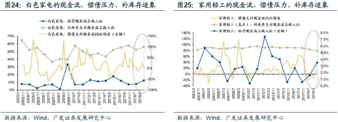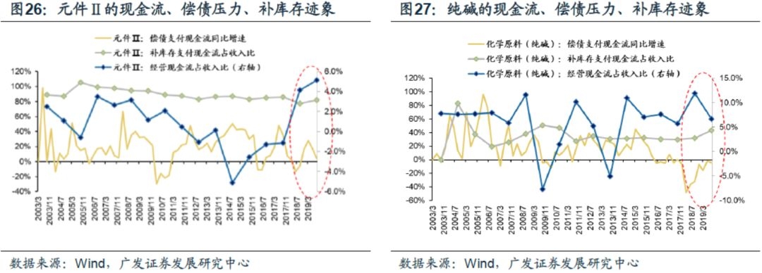 白色家电、家用轻工、元件、化学原料(纯碱)同时满足上述3个条件,可能会开启“补库存”周期:经营现金流改善、偿债支付现金流增速低位、行业(龙头)补库存支付现金流已经出现回升迹象。