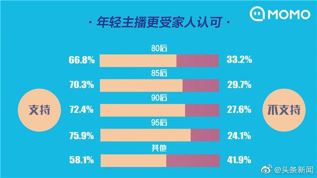 1月8日,国内领先的移动社交平台陌陌发布了《2019主播职业报告》,通过对近万名移动网络用户,主播的抽样调查发现:33.6% 的95后每天看直播超2小时;近8成用户会为直播付费,24.1%的职业主播月收入过万; 11.8%的 95后主播为父母买房。