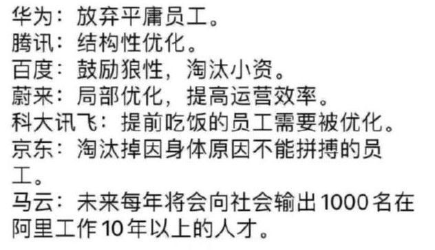 这句话被重新翻了出来,不少网友开始较真了:这不就是换种方法说裁员吗?想当初,马云的一句“996是福报”曾引起社会的热烈讨论,许多社畜在心里将马云拉下神坛,认为这不过就是个“唯利是图”、“压榨员工”的资本家而已。