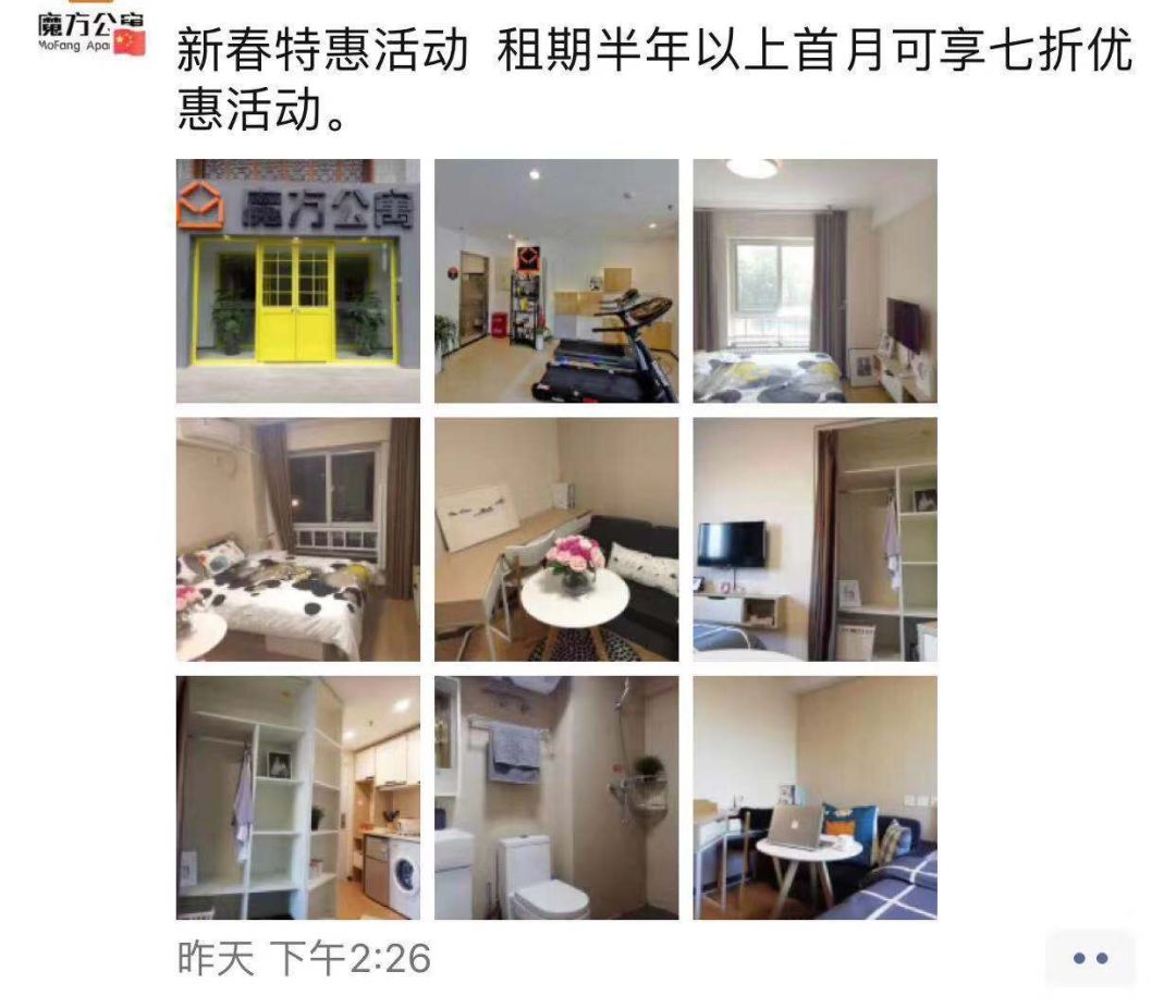 魔方公寓推出租期半年以上的用户,可享首月7折的优惠活动。中国证券报记者从位于亮马桥、酒仙桥附近多处公寓了解到,该区位普通公寓目前报价在6500-7500元/月。