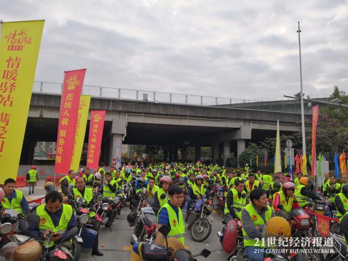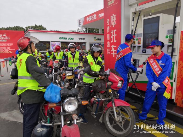 据21世纪经济报道记者了解,为保障更多骑行摩托的务工人员能够顺利返乡过春节,包括中石化、中国邮政及粤运交通等企业联合交警部门开展了系列公益活动。