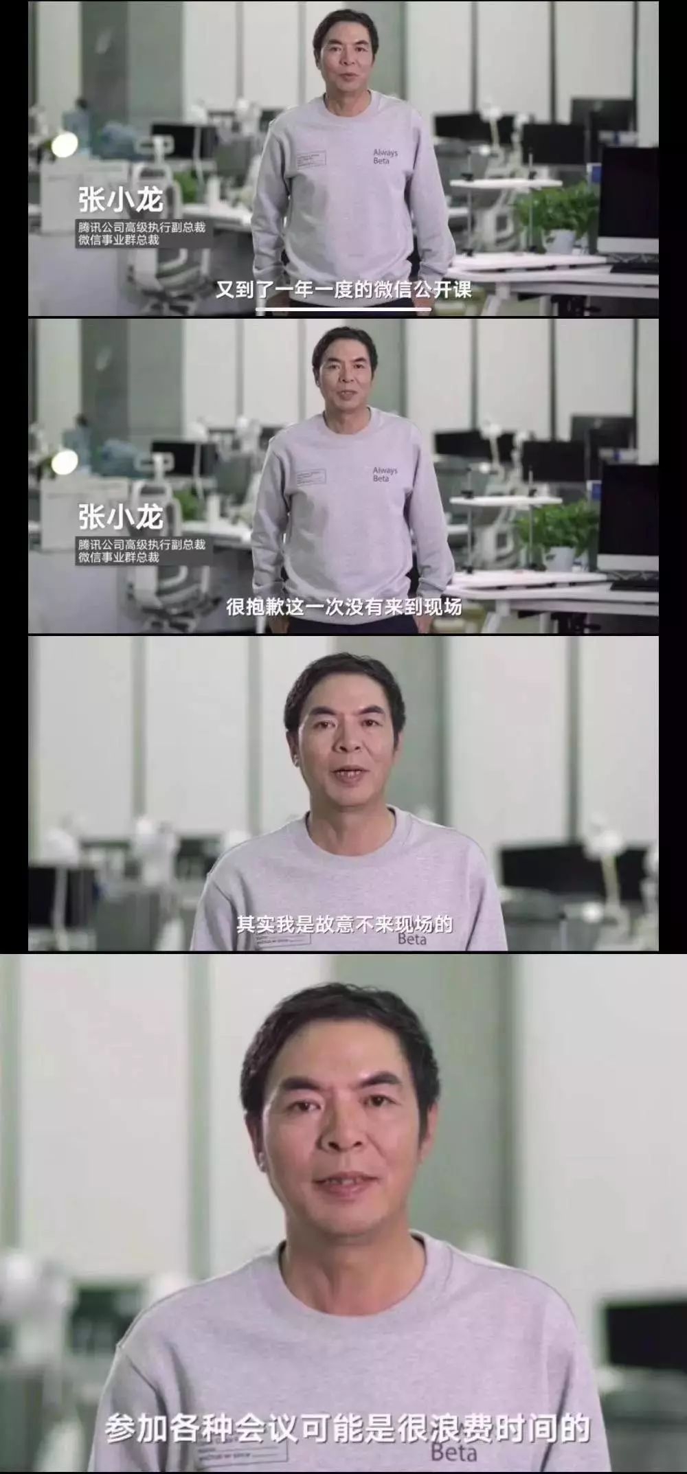 开个玩笑,图片是被曲解的,其实张小龙的本意是想把时间多交给自己的团队,但他“参加会议是很浪费时间”的梗,孤独的张小龙可是摘不掉了。