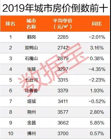 在一线城市房价狂飙到天际的情况下,一些四五线小城市的房价则一路向下。《2019年320城房价排行榜》数据显示,东北鹤岗二手房均价仅2285元,位居倒数第一,而且去年还跌了2.01%。