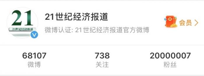刚刚,21世纪经济报道微博粉丝突破2000万!
