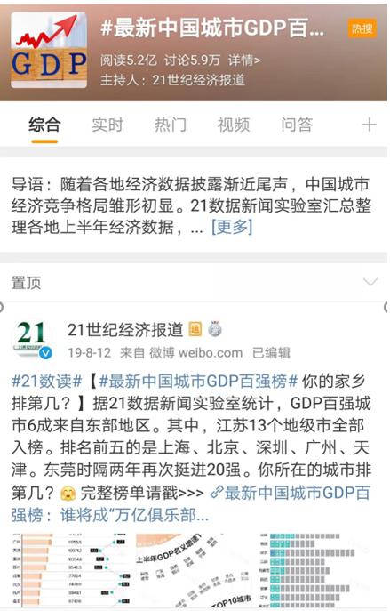 由21数据新闻实验室出品的重磅可视化策划#最新中国城市GDP百强榜#连续两天登上新浪热搜,吸引了5.2亿人次关注;我们关心教师待遇与地区教育问题,#深圳近30万年薪聘中小学老师#引爆全网;我们关切民生经济问题,创建了#中央储备冻猪肉拟投放1万吨##中国恢复从加拿大进口猪肉#等多个热搜话题。