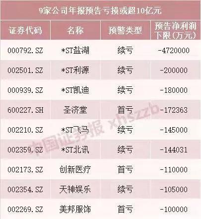 1月11日晚,*ST盐湖发布业绩预告,预计2019年亏损432亿元-472亿元。一年巨亏超400亿元,*ST盐湖已经基本锁定年度“亏损王”,*ST信威、乐视网都得靠边站了。