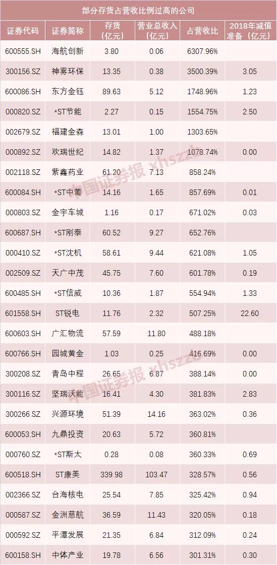 海航创新、神雾环保、东方金钰、*ST节能、福建金森、欢瑞世纪等6家公司的占比超过了10倍。这意味着,按照现在的销售情况,这些企业即便不再生产,也需要10年时间来消化存货。