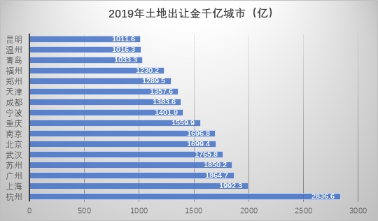 “卖地大王”杭州蝉联第一,卖地收入高达2836亿,是深圳的4倍多。