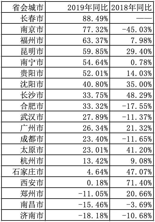 2019年卖地收入同比增长达20%以上的城市有26个。其中省会城市就有13个,占了一半。其他也多为大城市、热点城市。