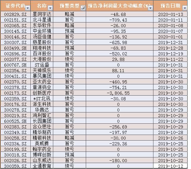 1月以来,公布2019年业绩预告的公司已超过130家,截至2020年1月13日,两市共有696家上市公司发布了2019年报业绩预告,披露率为18.49%;其中,预喜公司占比近56%。74家预告首亏,不少公司均提到了商誉因素,商誉暴雷风险仍需警惕。