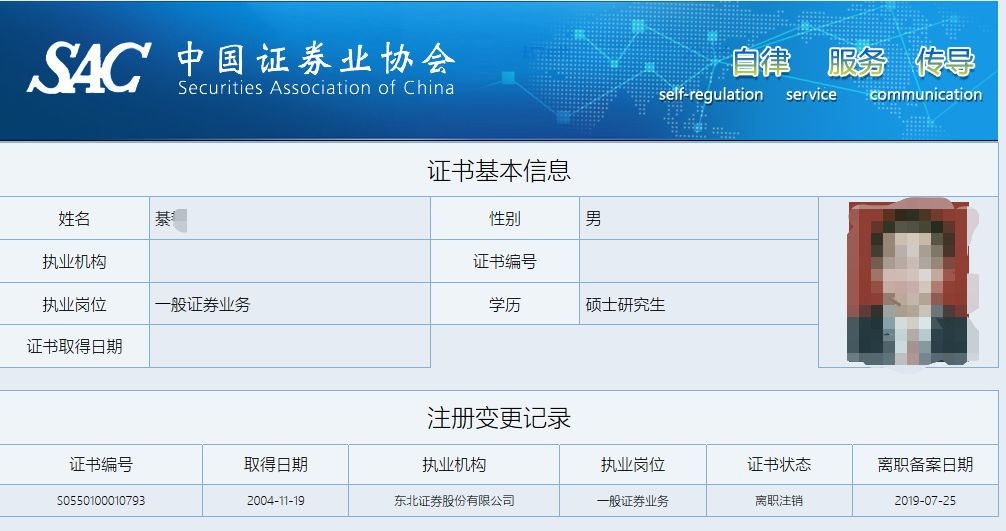 据公司内部人士介绍,綦某已在去年匆匆离职。而根据中证协注册证券从业人员信息查询来看,綦某的确在2019年7月办理了离职注销手续。