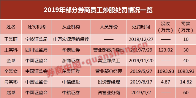 就在刚刚结束的2019年中,证券员工违法炒股者大有人在。有人借用妻女账户,有人伙同同学合资炒股,有人声称“父亲操作”,但无论是怎样的借口和理由,都没能得到监管部门的宽宥。