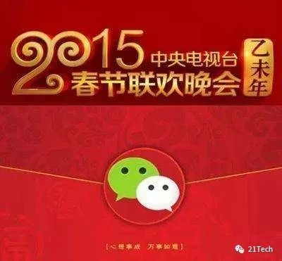 2015年,微信和春晚达成合作,通过“摇一摇”给观众送红包,总金额为5亿元。据统计,2015年除夕当天,微信红包收发总量达10.1亿次,春晚期间微信摇一摇的互动总量达110亿次。
