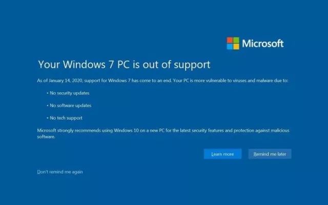 就在今天,微软将正式停止对Windows 7系统(简称Win7)的系统的更新维护服务。