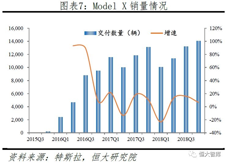 2015年第三季度,搭载鹰翼门豪华SUV Model X正式交付。相较Model S,Model X在性能上并没有太多的创新,两者的用户定位与价格也相仿,均属“Master Plan”第二阶段计划。Model X主要为满足需求更大的豪华SUV市场,并丰富产品线。较ModelS销量呈稳定趋势,ModelX依旧保持增长,目前全球总销量超12万辆,在美国大中型豪华SUV市场占有率与奔驰GLE、宝马X5等竞品接近。