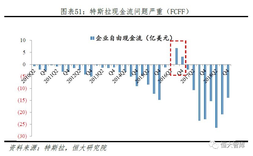 四、现金流问题。作为一家初创型高端制造企业,由于其重资产、重研发属性,特斯拉在长达10-20年的时间内现金流基本为负。尽管通过Model S与Model 3等爆款车型占据中高端新能源汽车市场,然而2010年第二季度至2018年第四季度期间,特斯拉企业自由现金流仅2个季度为正。为进军欧洲和中国市场,2017年第二季度以来特斯拉企业自由现金流更加恶化,2018年第四季度企业自由现金流达到负13.8亿美元。因此,2019年特斯拉将大幅度关闭门店和展示厅,并将销售模式转向线上,以削减成本开支。2019年Model 3的热销,一度令特斯拉现金流有所好转,2019年第三季度现金流降低为负1.7亿美元,但是随着美国和中国工厂Model Y加速投运、欧洲工厂Model 3/Y提速,未来现金流依然是重要的考虑点。