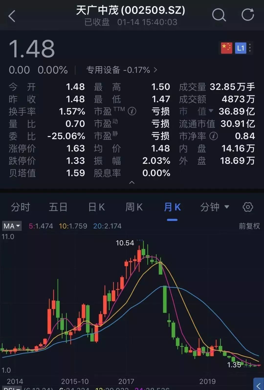 截至最新收盘,天广中茂A股市值仅剩下36.89亿,也就是说2019年的亏损差不多要把市值都亏没了。公司的股东户数仍高达5万。