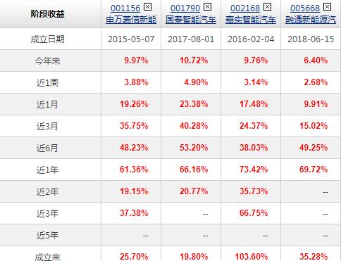 其中,近一个月以来,国泰智能汽车涨了23.38%;紧随其后的申万菱信新能源汽车和嘉实智能汽车则分别涨了19.26%和17.48%;排在第四的融通新能源汽车也涨了9.91%。