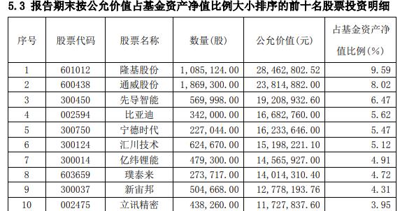 而申万菱信新能源的三季报十大重仓股则稍有不同,其布局为光伏+新能源汽车,前两大重仓股隆基股份和通威股份为光伏巨头,此外其也布局了宁德时代,比亚迪等新能源汽车龙头。
