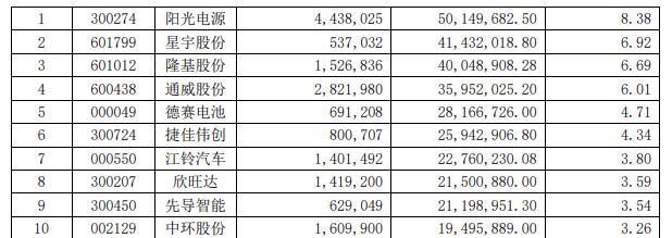 嘉实智能汽车的布局思路和申万菱信新能源类似,其重仓部分仓位在光伏,第一大重仓股为光伏逆变器龙头阳光电源,也布局了隆基股份和通威股份,还布局了先导智能等新能源汽车相关标的。