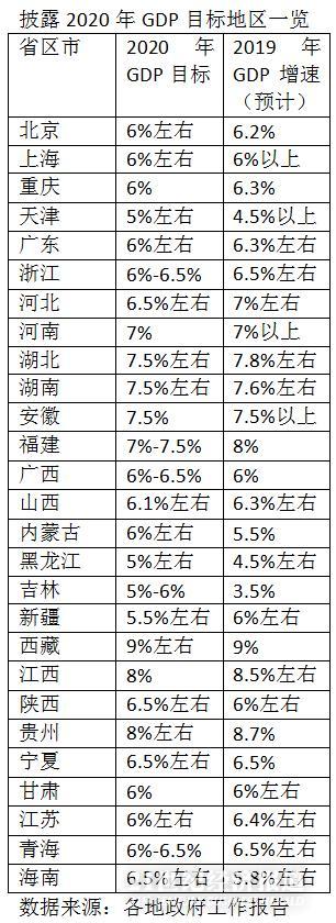 此外,包括海南在内,天津(2019年4.5%以上,2020年提出5%左右)、吉林(2019年3.5%,2020年提出5%-6%)、黑龙江(2019年4.5%左右,2020年提出5%左右)、内蒙古(2019年5.5%,2020年提出6%左右)、陕西(2019年6%左右,2020年提出6.5%左右)等6地,明显提升了2020年经济增速的目标。