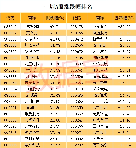 中微公司累计涨幅69.71%排在首位, 英维克累计涨幅61.02%排在第二位。英维克今日再度涨停,这是其连续第5个涨停板,最新收盘价创两年来新高。