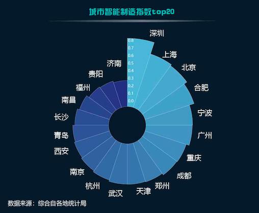 根据报告对全国35个大中城市进行智能制造指数的测算,合肥紧跟深圳、上海、北京之后排名第四。