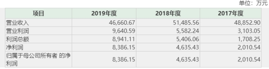 从业绩情况看,宏济堂2017年-2019年的营业收入分别为4.89亿元、5.15亿元、4.67亿元,净利润分别为2010.54万元、4635.43万元、8386.15万元。