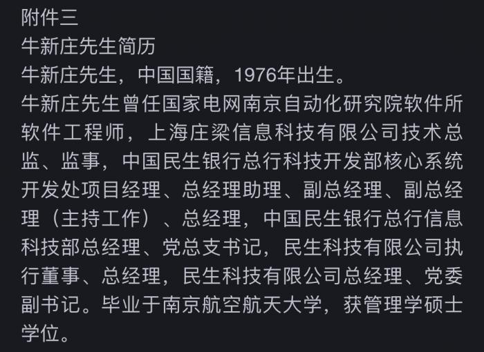 与此同时,邮储银行还聘任梁世栋为首席风险官、牛新庄为首席信息官。