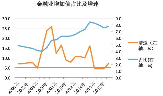 “2015年以前,影子银行繁荣,部分资金在金融体系空转,带动了金融业增速和占比的提高。”中国民生银行首席研究员温彬表示温彬称,“不过2016年来,金融开启强监管周期,去杠杆、去通道使金融空转减少,金融业增加值增速和占比有所下降,这实际上反映了金融服务实体经济的作用在提升。”