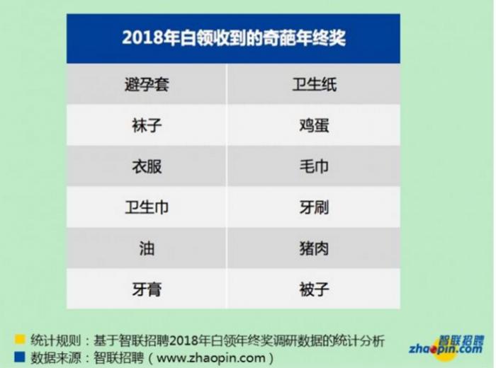 奇葩年终奖年年有。去年,智联招聘的一份白领年终奖调查显示,鸡蛋、猪肉、油、毛巾等“福利”入选2018年奇葩年终奖之列。今年的“想象力”又更进了一步。今天,21君来盘点一下,看看这一年有啥年终奖成为大家热议的对象。