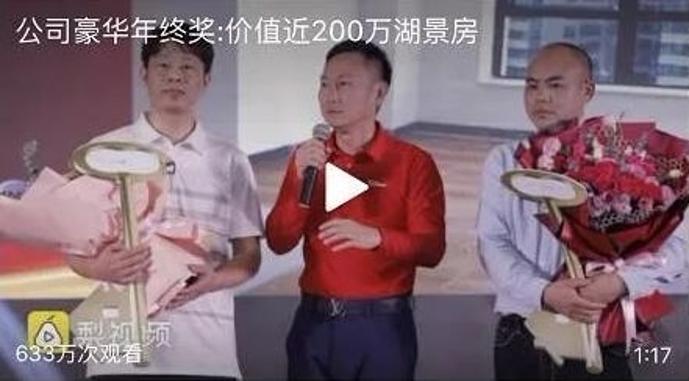 日前,广东东莞市安域实业有限公司年终奖最高奖励2名员工湖景房,每套价值近200万。公司一次性支付房款并装修,员工可拎包入住。