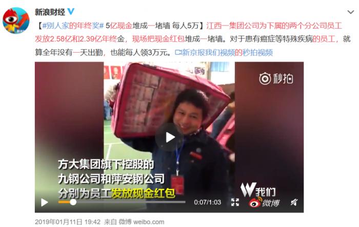 对职场人士来说,最喜欢的莫过于简单粗暴的方式——直接现金,用麻袋装的那种。据报道,江西一集团为下属的两个分公司员工发放2.58亿和2.39亿年终现金红包,现场把现金堆成一堵墙,员工每人5万扛回家。