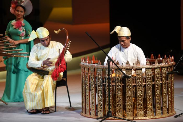2017年9月23日,第十五届亚洲艺术节在浙江宁波开幕。图为缅甸民乐演奏家在演奏乐曲《米亚曼吉利》。