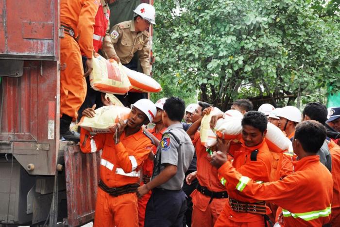 2015年8月7日,云南省政府向缅甸灾民捐赠的救灾物资运抵曼德勒。持续降雨导致缅甸14个省邦中的12个省邦遭受不同程度水灾。