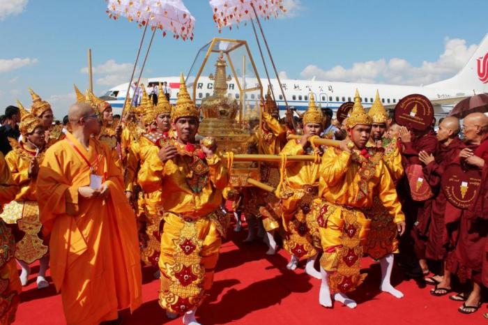 2011年11月6日,北京西山灵光寺佛牙舍利塔中供奉的佛牙舍利抵达内比都机场,开始为期48天的缅甸供奉巡礼。