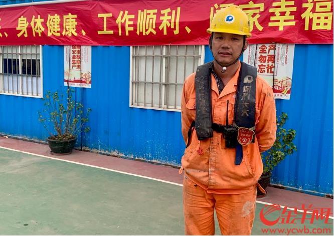 去年2月15日过完春节,78年出生、有着20多年工地施工经验的黄维俊一个人从四川泸州老家来到大湾区的深中通道海上平台,负责主墩平台上的水泥、轧钢筋工作安全监督。一干就是一整年,从没见过家人。