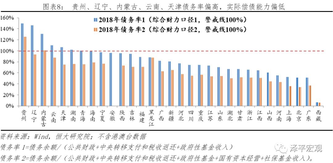 1.2 部分省市债务风险较高,西部地区债务风险高