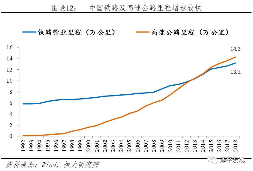 城镇化率提高代表着城镇扩容的过程,市政工程、地下管廊等城市基础设施的新建和改建需要大量资金。2018年,我国常住人口城镇化率以及城镇常住人口分别达到59.6%和8.3亿人。此外,为促进区域间资源、人口等要素的流通,提高区域经济发展的协同性,我国的铁路与高速公路运营里程在不断增加。2018年,中国铁路与高速公路运营里程分别达到13.2万公里和14.3万公里,两者在2014-2018年的平均增速分别为4.2%和6.2%;铁路和高速公路建设是中国基建持续推进的一个缩影,建设过程中产生的资金需求大部分由政府部门借债支撑。