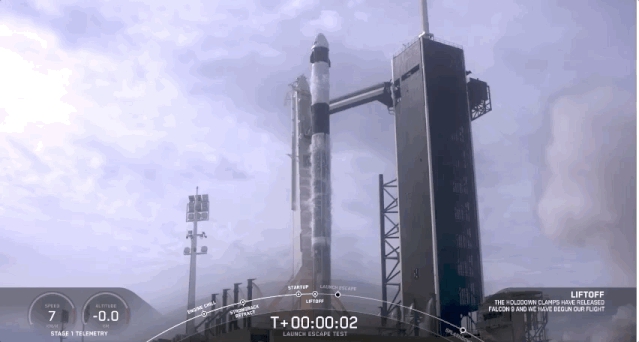 而此次空中炸火箭,正是执行NASA空间站载人合同的最后一次测试,用以展示机组人员在发射紧急情况下能够使宇航员摆脱伤害的能力。