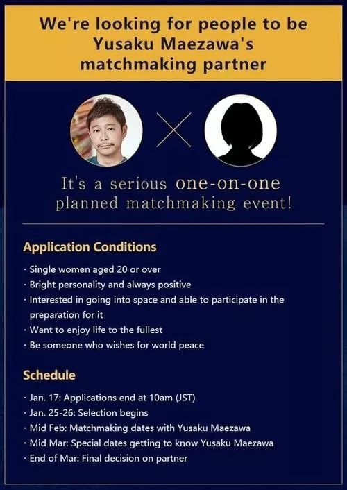 1月13日,日本亿万富翁前泽友作公开征集女友去月球。