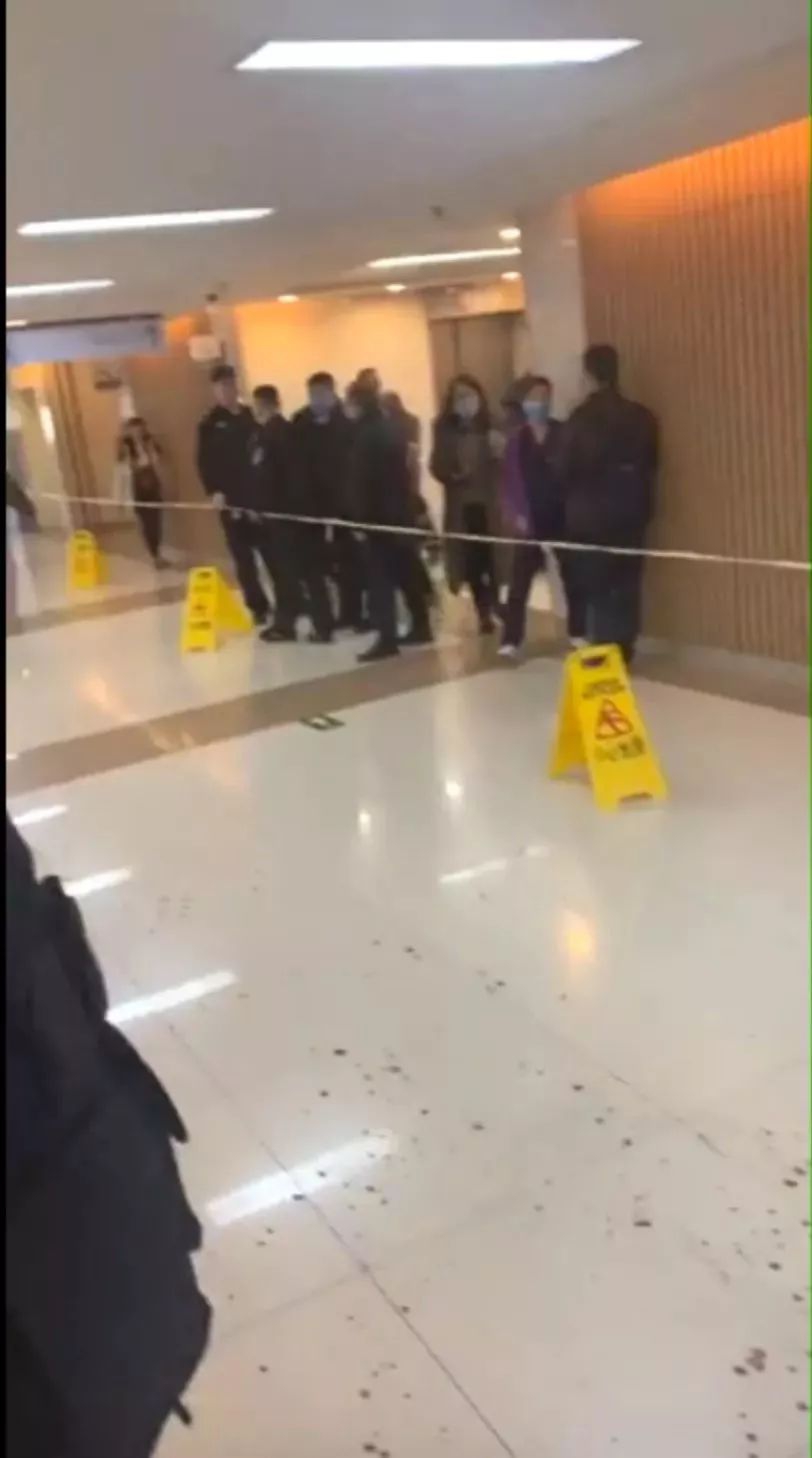 据事发现场视频显示,在朝阳医院内门诊楼内,地上满是血迹。多名保安和民警在现场维持秩序。
