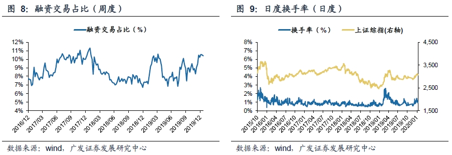 (1)融资交易占比:上周为10.4%,前一周为10.5%;