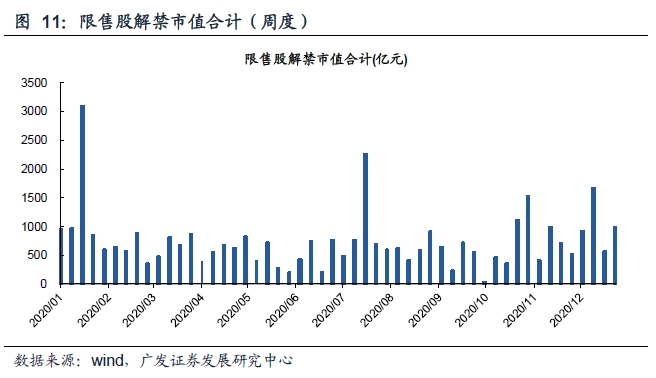 限售股解禁:上周限售股解禁961亿元,前一期限售股解禁950亿元。预计本周限售股解禁3082亿元。
