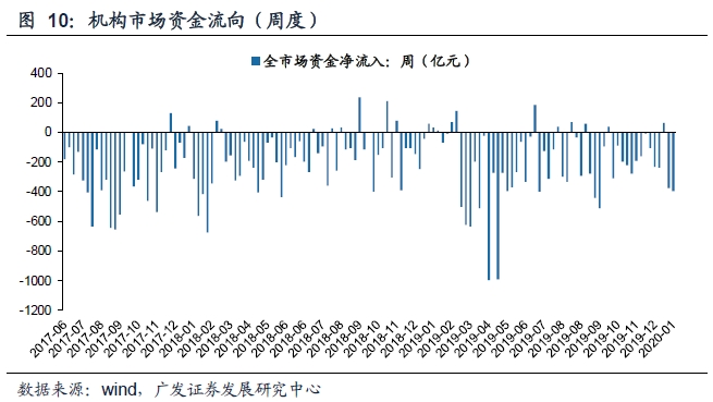 (3)机构资金流向: 上周机构合计挂单卖出396亿元,前一周挂单卖出377亿元。