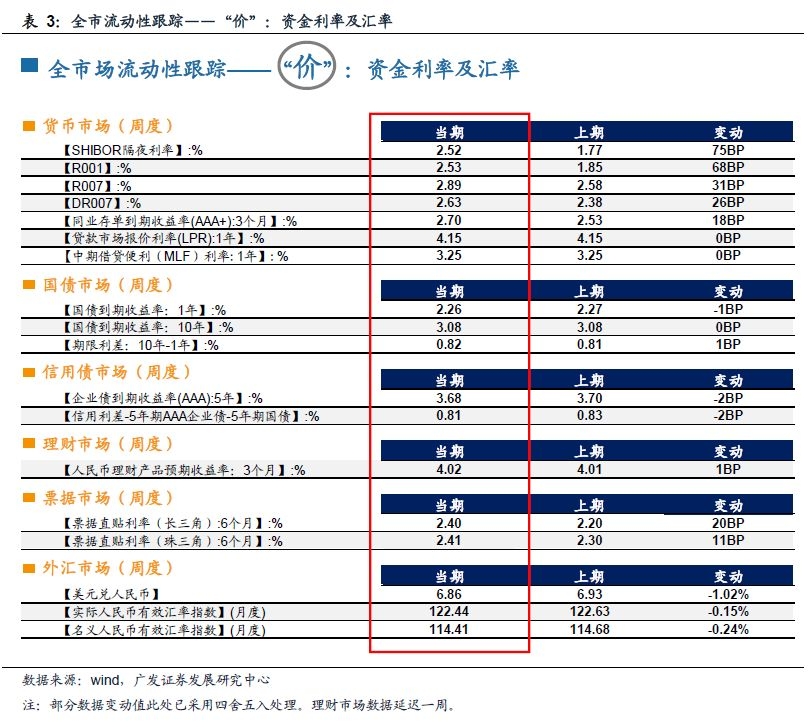 三、全市场流动性跟踪——“价”:资金利率及汇率