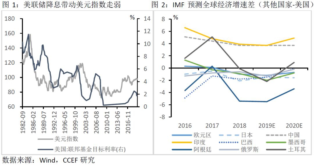 - 汇率:美元指数的强势难以为继,美国相对其他国家的增速差有望收窄,美元迎来边际走弱的压力,新兴市场货币贬值的压力减缓;